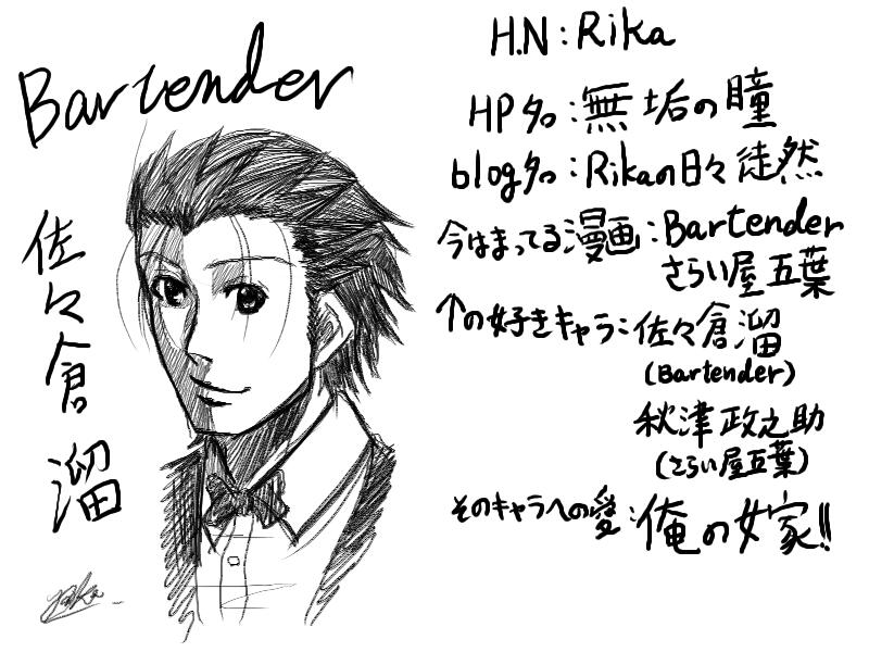 という事で、私が愛してやまないバーテンダーの佐々倉!!